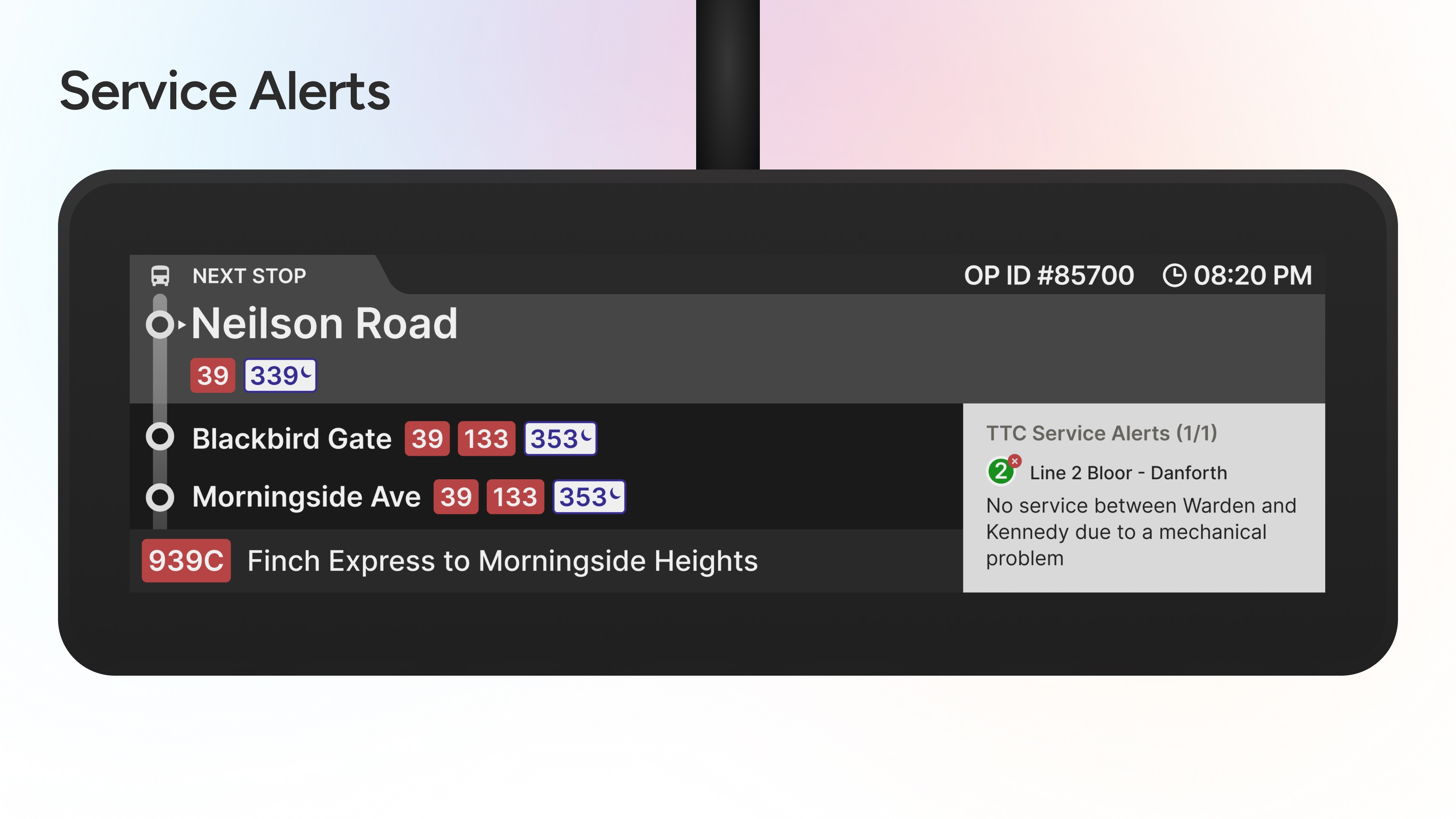 There is untapped potential in utilizing the extra screen space available in PIDs. The integration of service alerts would further enhance the commuting experience and provide more value per pixel.